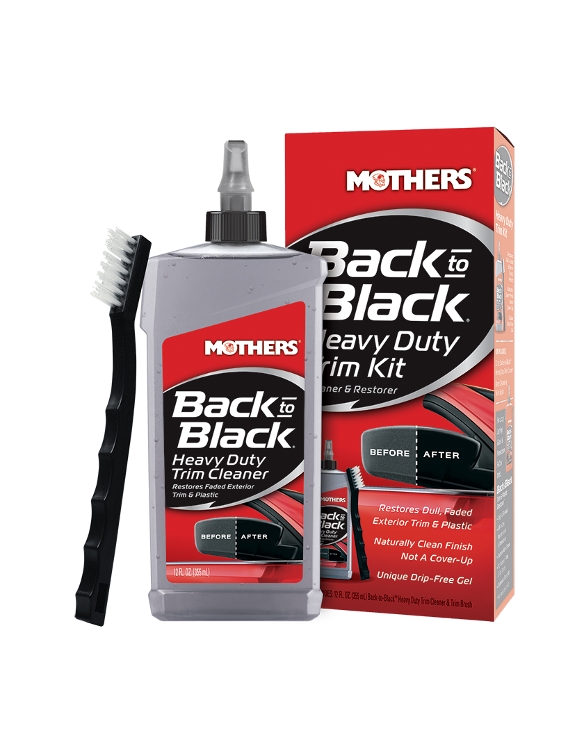 Mothers Back-to-Black Heavy Duty Trim Cleaner Kit — providing unmatched penetration and cleaning ability, restoring your exterior trim and textured plastics to their original, like-new color. Heavy Duty Trim Cleaner is not a cover-up; it deep cleans, allowing you to erase years of neglect and environmental abuse, including oxidation, dirt, road grime and even stubborn embedded wax. It features a unique, drip-free gel, leaving you with a long-lasting, naturally clean surface.